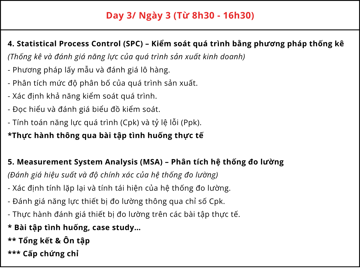 Thời lượng khóa học: 3 ngày (từ 8h30 – 16h30)