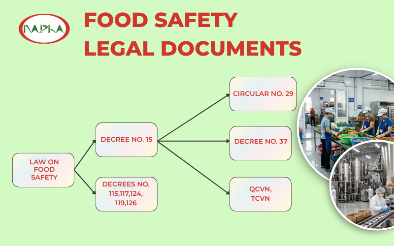 The Law on Food Safety serves as the primary legal instrument, providing direction for subsequent Decrees (e.g. 15, 115, 117) as well as the current system of Circulars and National Technical Regulations (QCVN/TCVN). It constitutes a mandatory basis for enterprises to benchmark safety criteria and ensure the legal compliance of their products.