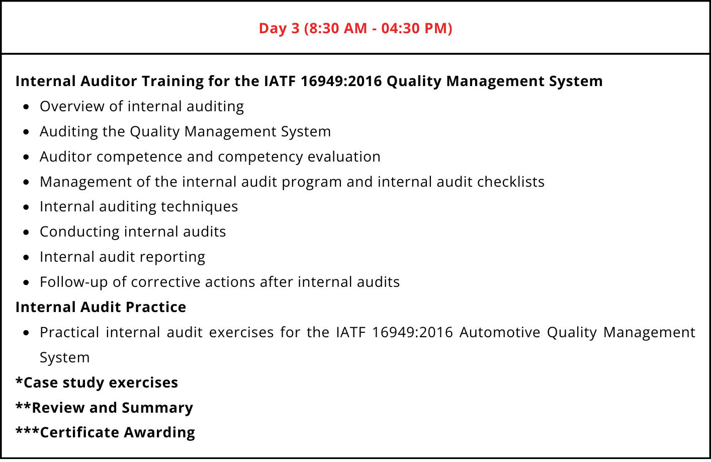 - Learn how to conduct internal audits within the organization and prepare audit reports in accordance with IATF 16949 requirements