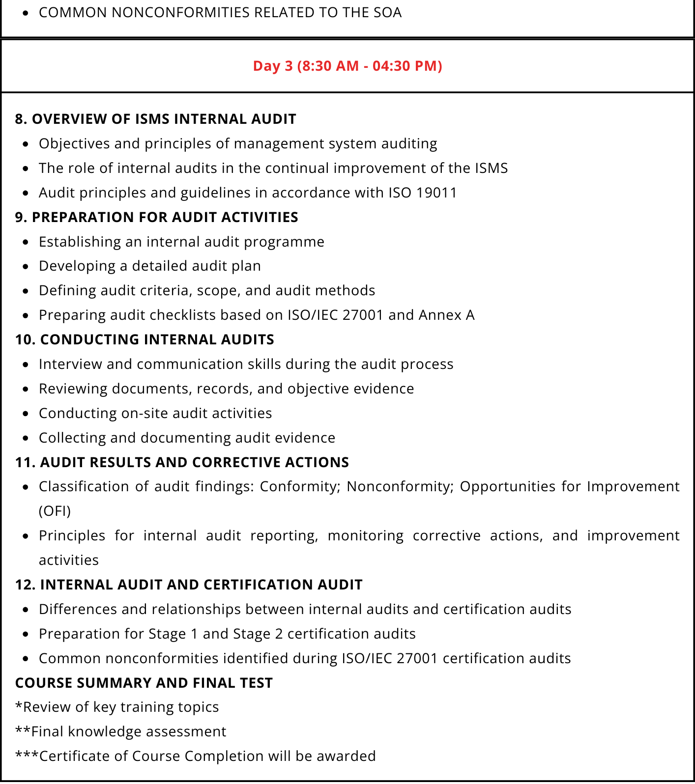 - Individuals seeking to develop competencies as ISO/IEC 27001 internal auditors
