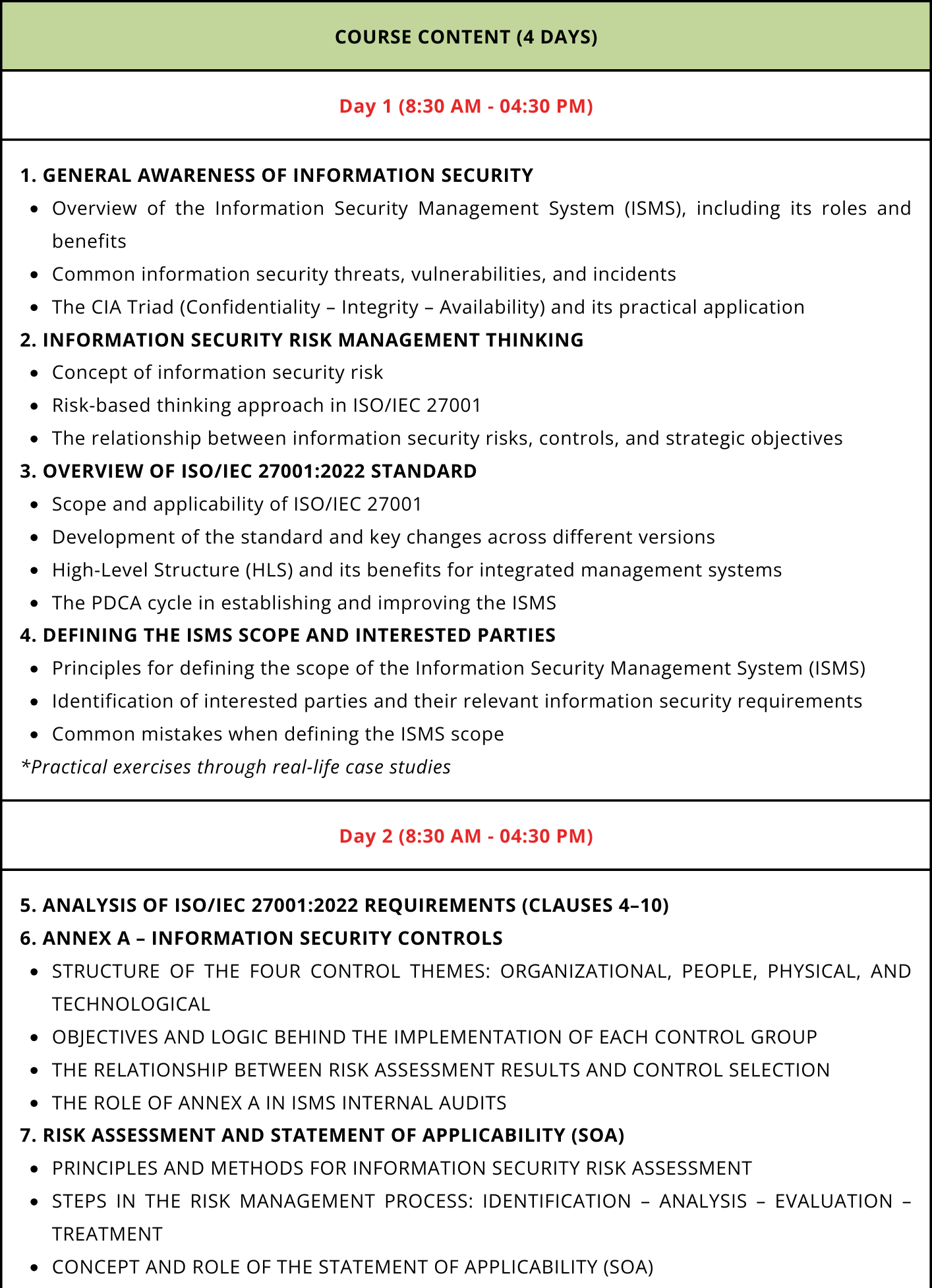 - Understand the requirements and management approach of information security according to ISO/IEC 27001:2022