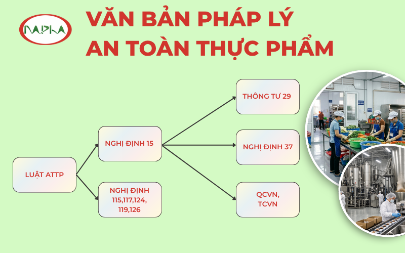 Luật ATTP là văn bản gốc, định hướng cho các Nghị định (15, 115, 117...) và hệ thống các Thông tư, Quy chuẩn kỹ thuật Quốc gia (QCVN/TCVN) hiện hành. Đây là căn cứ bắt buộc để doanh nghiệp đối chiếu chỉ tiêu an toàn và đảm bảo tính pháp lý cho sản phẩm