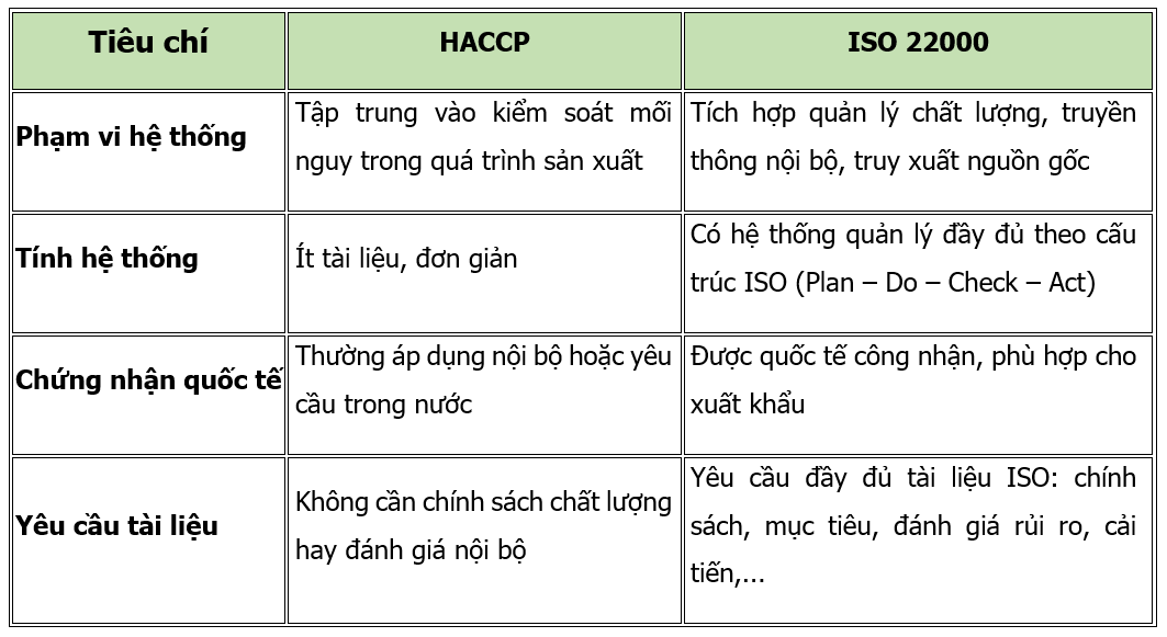- Áp dụng nguyên lý HACCP: ISO 22000 tích hợp đầy đủ 7 nguyên tắc của HACCP.