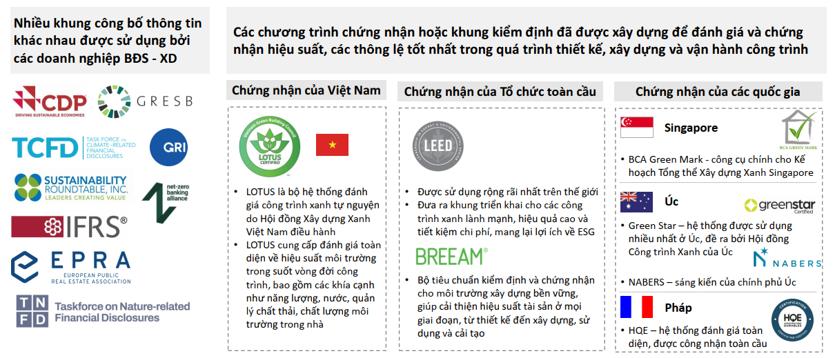 3/ Các tiêu chuẩn, khung và chứng nhận về bền vững được sử dụng phổ biến trong ngành BĐS – XD