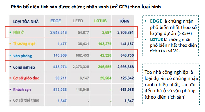 Tổng số dự án có chứng nhận xanh (tính đến Q3/2024) là 305 dự án ~ 7,483 triệu m2 sàn