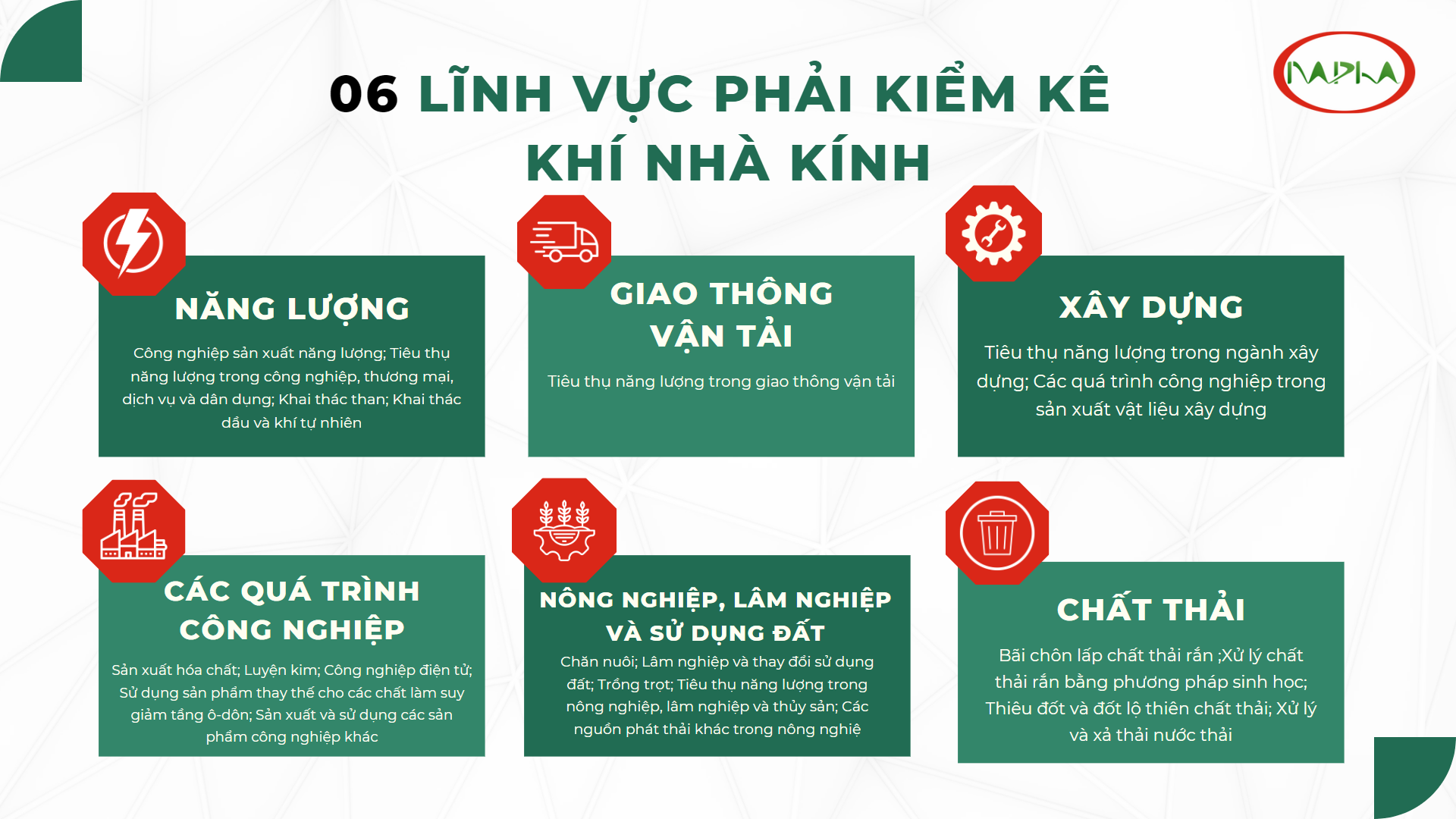 06 Lĩnh vực/ngành nghề bắt buộc phải kiểm kê khí nhà kính