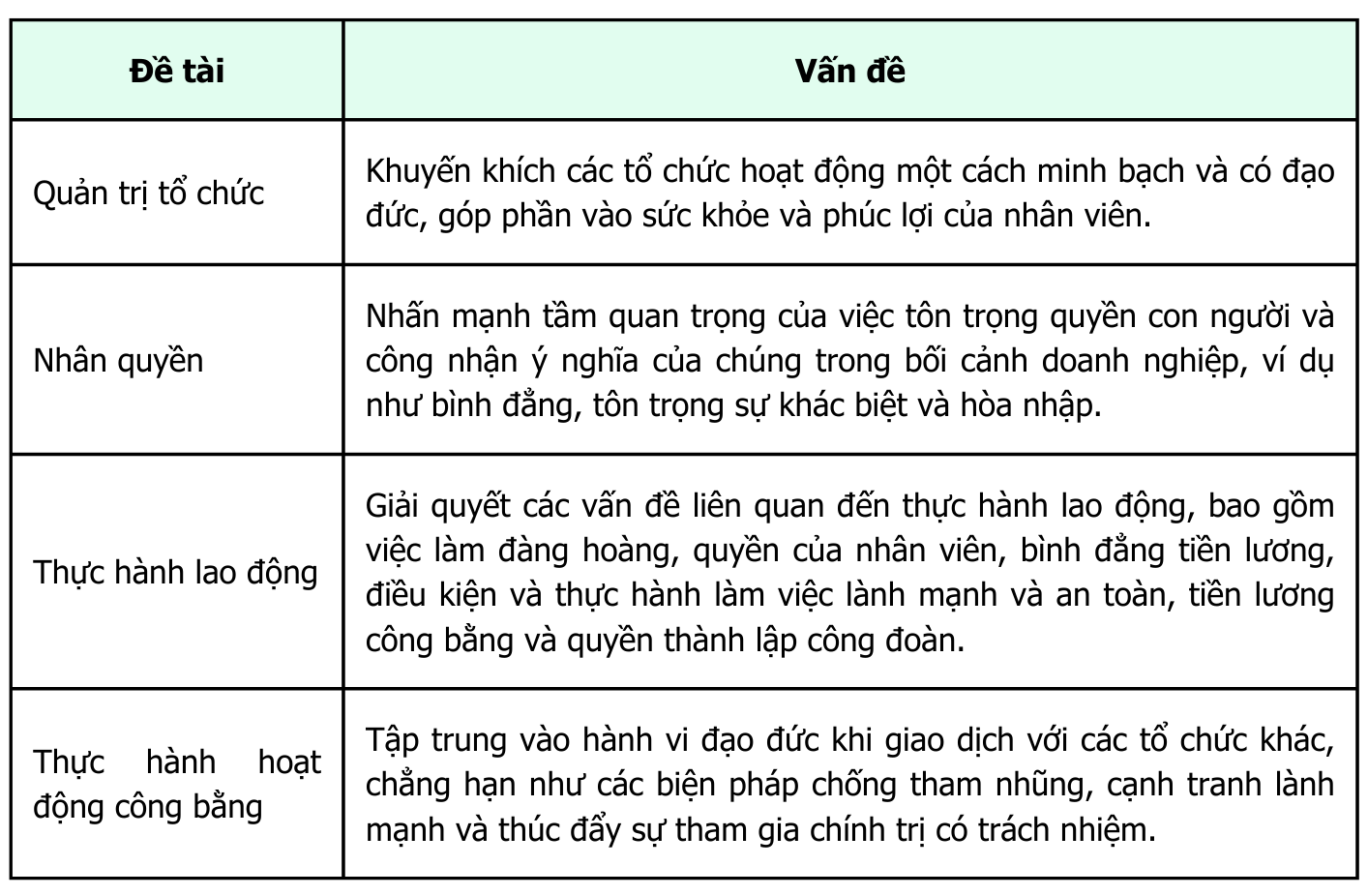 - Tuân thủ nhân quyền;