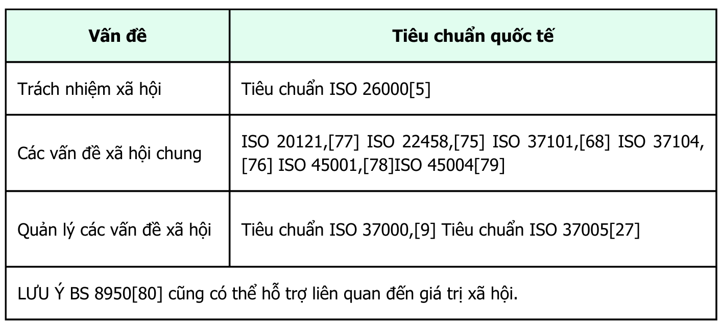 Bảng 8 — Mẫu Tiêu chuẩn quốc tế có sẵn cho các yếu tố xã hội
