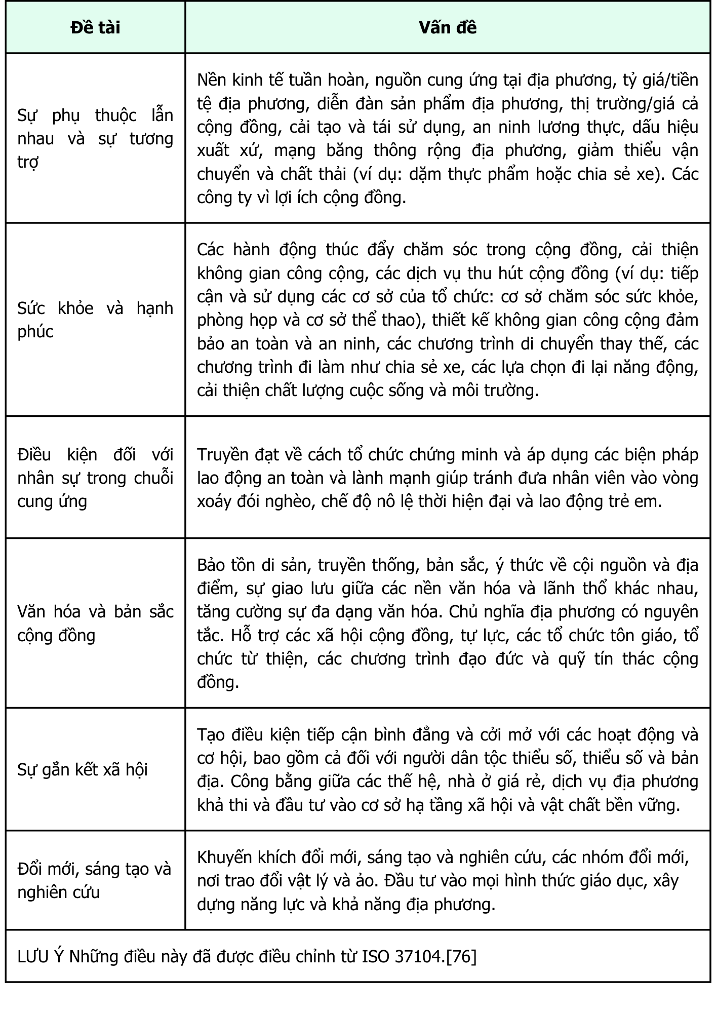 Bảng 5 — Ví dụ về các vấn đề liên quan đến việc xác định rủi ro và cơ hội xã hội