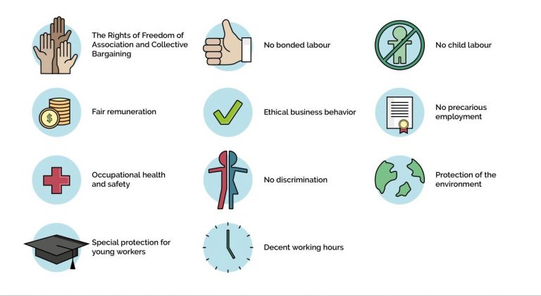 Đánh giá BSCI chủ yếu bao gồm: tuân thủ luật pháp, cấm lao động trẻ em, cấm lao động cưỡng bức, tự do liên kết và quyền thương lượng tập thể, cấm phân biệt đối xử, bồi thường, giờ làm việc, an toàn tại nơi làm việc, môi trường và an toàn.