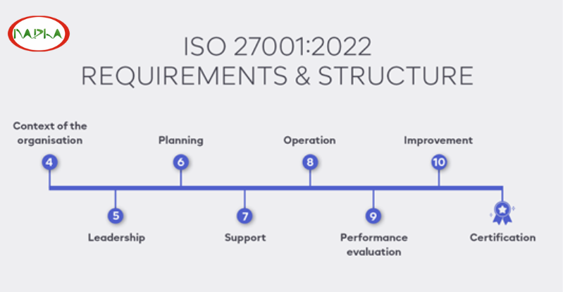 ISO/IEC 27001 được xây dựng theo cấu trúc HLS (High Level Structure), gồm 10 điều khoản chính:
